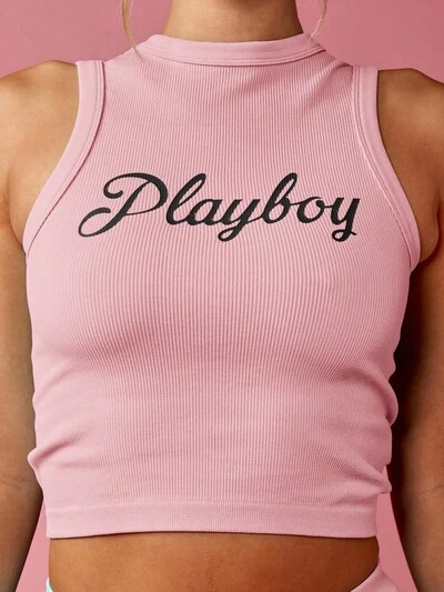 Missguided x Playboy Geripptes Racer-Crop-Top im Retro-Stil