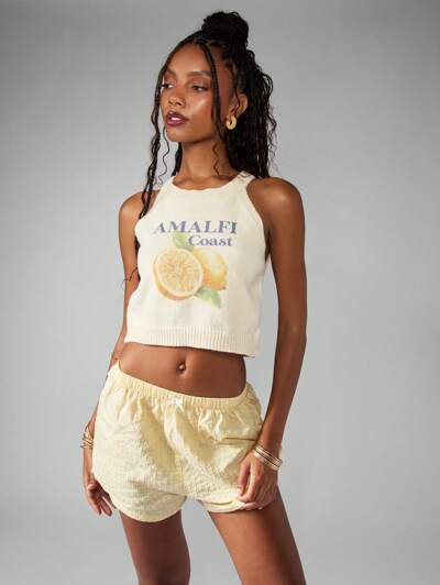 MISSGUIDED Kurzer Strickpullover mit Zitronen-Print an der Amalfiküste