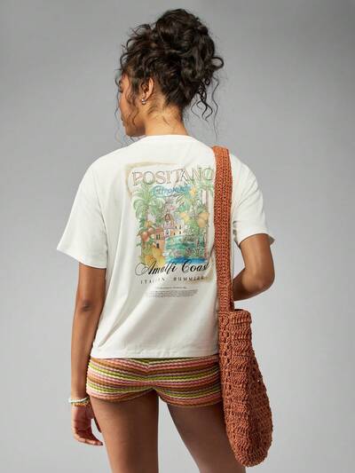 MISSGUIDED Übergroßes T-Shirt mit italienischem Grafikdruck von Positano und Amalfiküste-35%