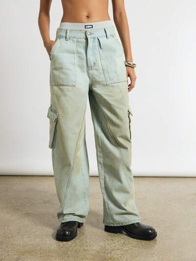 AiiRZ Utility Cargo Barrel Bein Jeans im Vintage Stil, abgenutzt, mit weiten Taschen, Workwear Hose, locker geschnitten, hoher Bund, Y2K Mode Streetwear für Frühling, Sommer, Herbst-50%