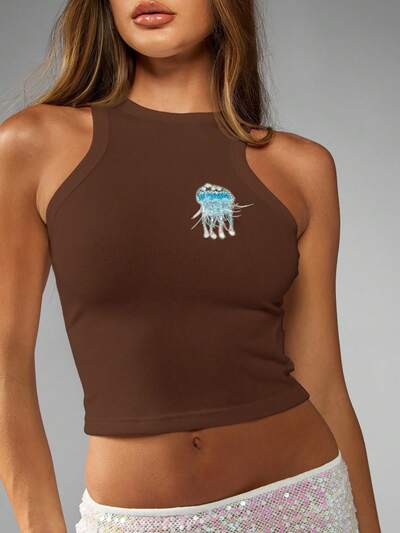 MISSGUIDED Top de cuello halter acanalado con aplique de medusa
