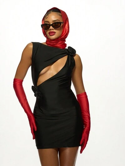 MISSGUIDED Vestido mini ajustado sin mangas con aberturas y apliques de rosas-40%