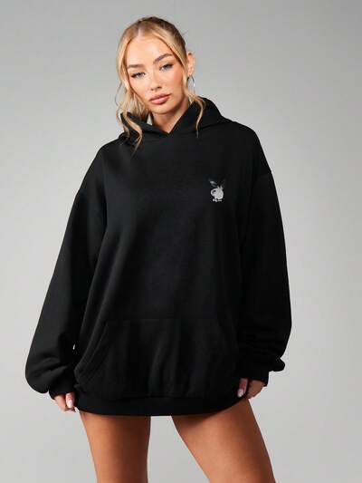 Missguided x Playboy Vestido extragrande con capucha y texto de diamantes en la espalda-45%