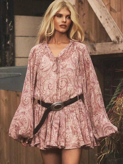 MISSGUIDED Minivestido con estampado paisley, mangas globo y falda escalonada