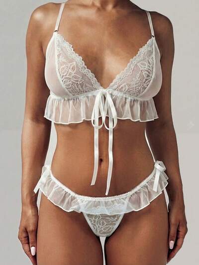 MISSGUIDED Conjunto de bralette de malla con volantes de encaje y lazo frontal10,99 US$12,22 US$