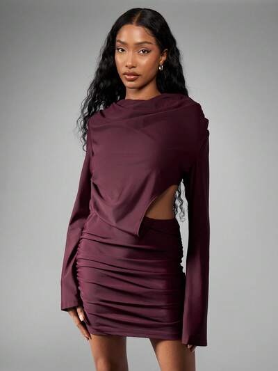 MISSGUIDED Vestido mini manga larga con abertura, de caída exagerada