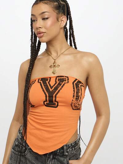 SUMWON WOMEN Top corto tipo bandeau con diseño de letra de campus desgastado, look estético Y2K casual para fiestas y festivales de verano
