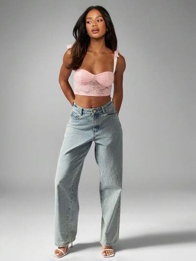 MISSGUIDED Top de tirantes de encaje estilo bustier con largo corto