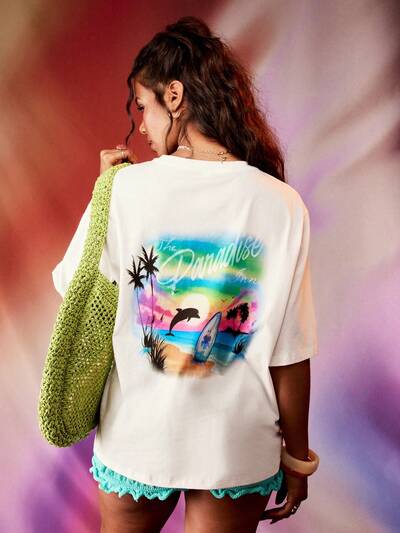 MISSGUIDED Camiseta gráfica de la playa de surf Paradise Inn-50%