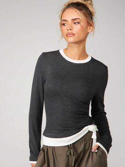 MISSGUIDED Top de manga larga acanalado con ribete en contraste