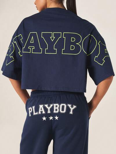 Missguided x Playboy Camiseta corta con gráfico extragrande azul marino-25%