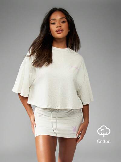Missguided x Playboy Camiseta básica esencial informal de gran tamaño para estar en casa
