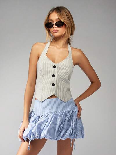 MISSGUIDED Conjunto de dos piezas de minifalda con volantes y cuello halter con textura de burbujas-35%