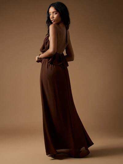 MISSGUIDED Vestido largo de cintura imperio con cuello halter y volantes