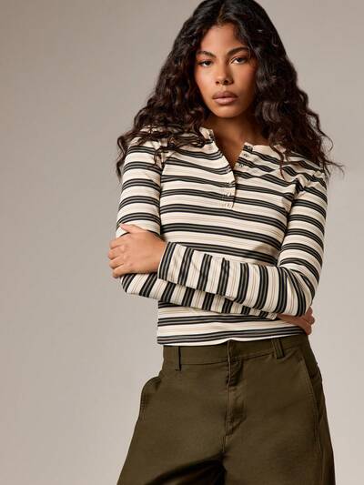 MISSGUIDED Top de manga larga con cuello y botones delanteros a rayas grises