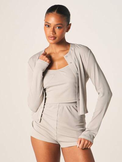 MISSGUIDED Conjunto de cárdigan y pantalones cortos de canalé-40%