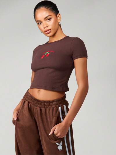 Missguided x Playboy Camiseta ajustada para bebé con bordado de cerezas y mangas cortas
