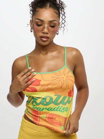 AiiRZ Top corto con recorte de cuello y espalda de tirantes y estampado gráfico con ribete de contraste