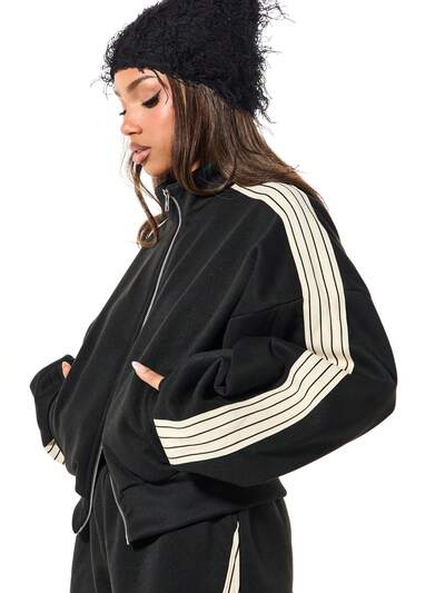 SUMWON WOMEN Chaqueta deportiva con cremallera y cinta lateral de contraste en silueta cuadrada para un estilo casual de streetwear