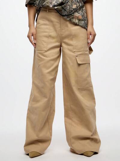 SUMWON WOMEN Pantalones tipo utilitario de pierna ancha con múltiples bolsillos, estilo de ropa de trabajo, corte recto de talle alto, declaración de moda, pantalones para el otoño e invierno-50%