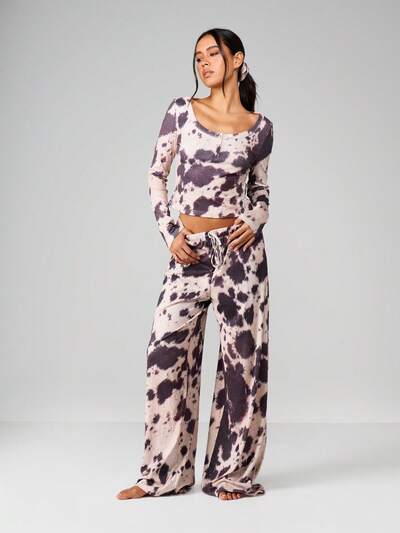 MISSGUIDED Top corto de manga larga con estampado de vaca y pantalones de pierna ancha33,35 US$60,64 US$