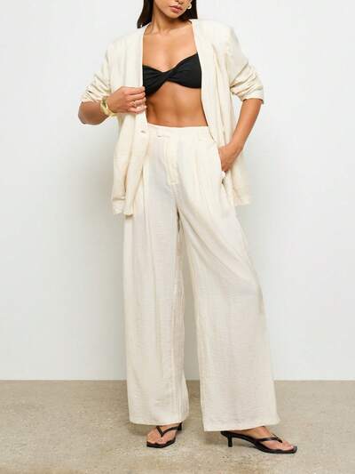 AiiRZ Pantalón con cintura alta, pliegues y piernas anchas