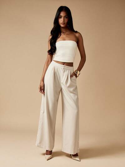 MISSGUIDED Pantalones anchos de sastre con detalle de abertura con botones