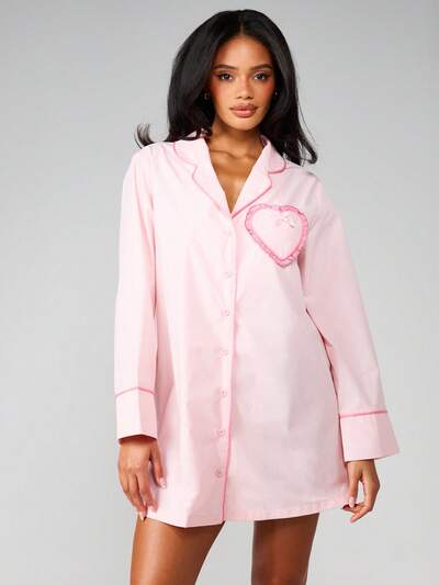 MISSGUIDED Camisón con botones y bolsillo de corazón de lunares-50%
