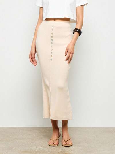AiiRZ Falda midi de estilo lápiz, con detalles de botones y punto acanalado, elegante para oficina en otoño e invierno-50%