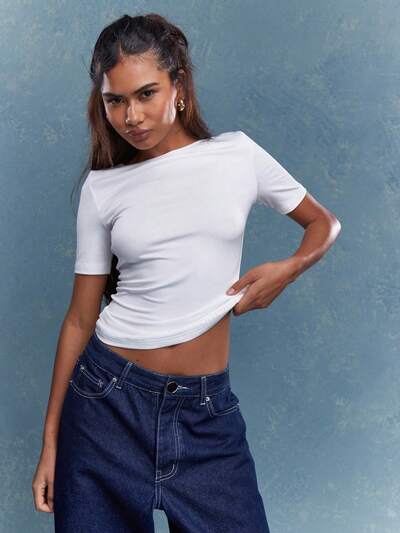 MISSGUIDED Camiseta ajustada de cuello redondo tipo Jersey