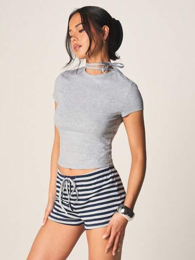 MISSGUIDED Camiseta cruzada con lazo en el cuello y largo corto