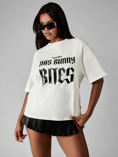 Missguided x Playboy Camiseta extragrande con estampado gótico