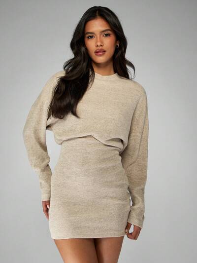 MISSGUIDED Minivestido de punto de manga larga, elegante vestido tipo suéter acanalado, ideal para combinar con otras prendas en invierno, otoño, fiestas, salidas nocturnas y moda moderna.
