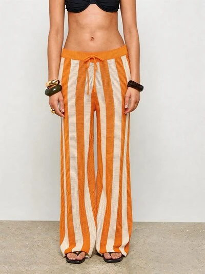 AiiRZ Pantalones anchos de punto naranja con rayas y cintura con cordón, pantalones casuales y holgados para el verano, la playa y el tiempo libre