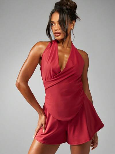 MISSGUIDED Monos de unitardo profundo con cuello halter y encaje