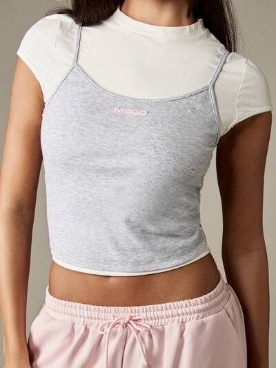 MISSGUIDED Top corto de doble capa con camiseta blanca