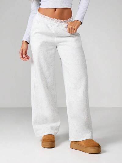 MISSGUIDED Pantalones deportivos de pierna ancha con ribete de encaje