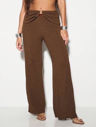 KIZN Pantalones anchos de estilo palazzo para resort con detalle de frente fruncido, cintura con pliegues, para uso en vacaciones, ocio y uso diario casual y elegante, adecuados para primavera y veranoCódigo: SAVE25