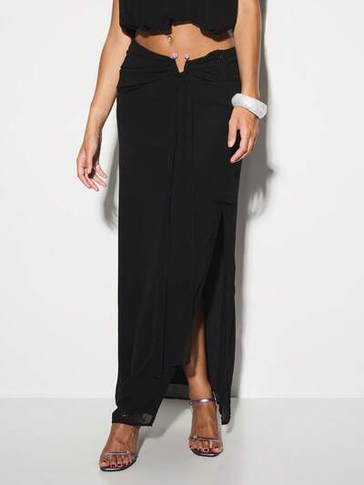 KIZN Falda larga y elegante tipo maxifalda con detalle de abertura frontal, cintura plisada y abertura lateral, para eventos formales, fiestas, vacaciones, primavera, verano, otoño y bodasCódigo: SAVE25