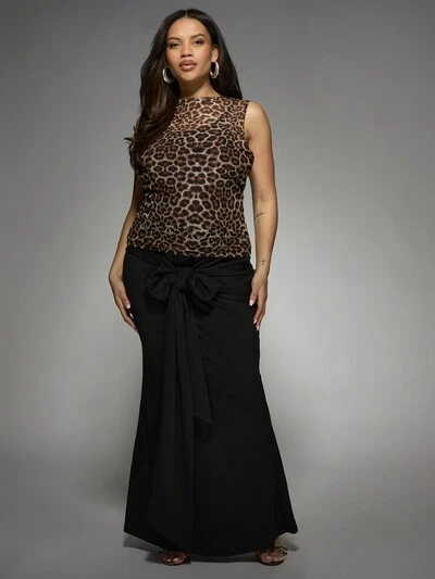MISSGUIDED PLUS Falda larga con lazo en la parte delantera y detalle de lazo de talla grande-45%