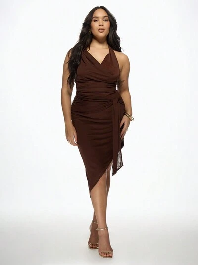 MISSGUIDED PLUS Vestido midi elegante asimétrico con cuello vuelto y talla grande-35%
