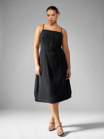 MISSGUIDED PLUS Vestidos midi de lino sin mangas con botones en tallas grandes-45%