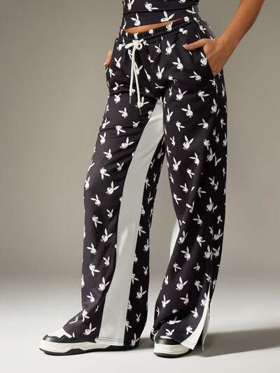 Missguided x Playboy Pantalon de survêtement à jambes larges imprimé