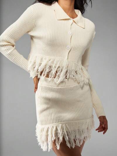 MISSGUIDED Ensemble en tricot côtelé avec détails à franges