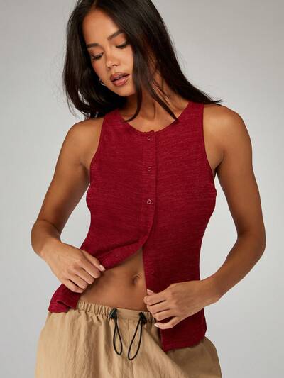 MISSGUIDED Débardeur court sans manches côtelé à boutons sur le devant