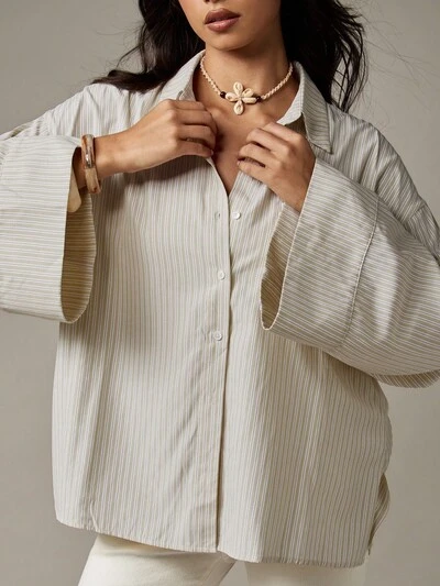 MISSGUIDED Chemise boutonnée à fines rayures et manches cloche