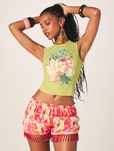 MISSGUIDED Débardeur vert citron à imprimé fruits tropicaux