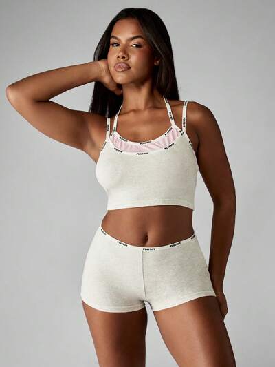 Missguided x Playboy Ensemble haut court et shorty en coton mélangé avec logo imprimé-55%