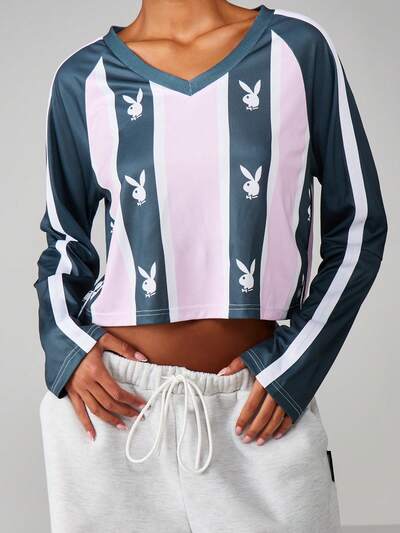 Missguided x Playboy Top court rayé à manches longues et col en V