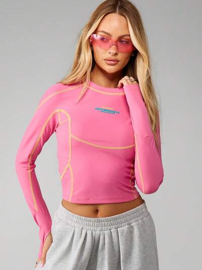 Missguided x Playboy Top court à manches longues avec coutures contrastées-45%